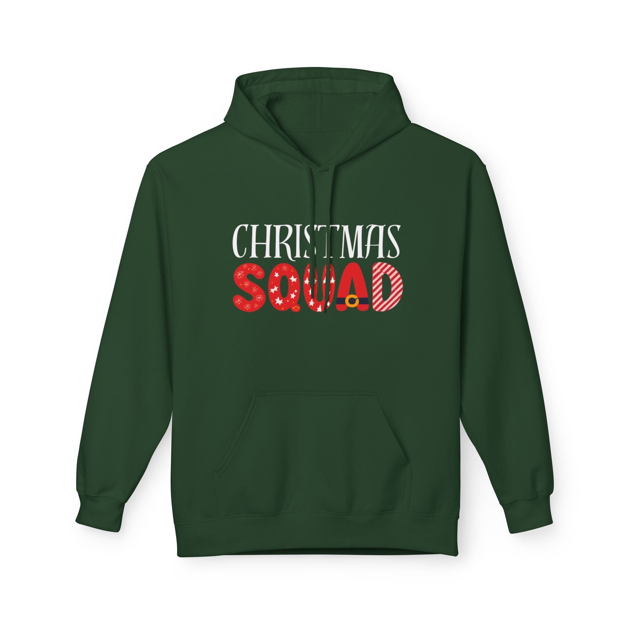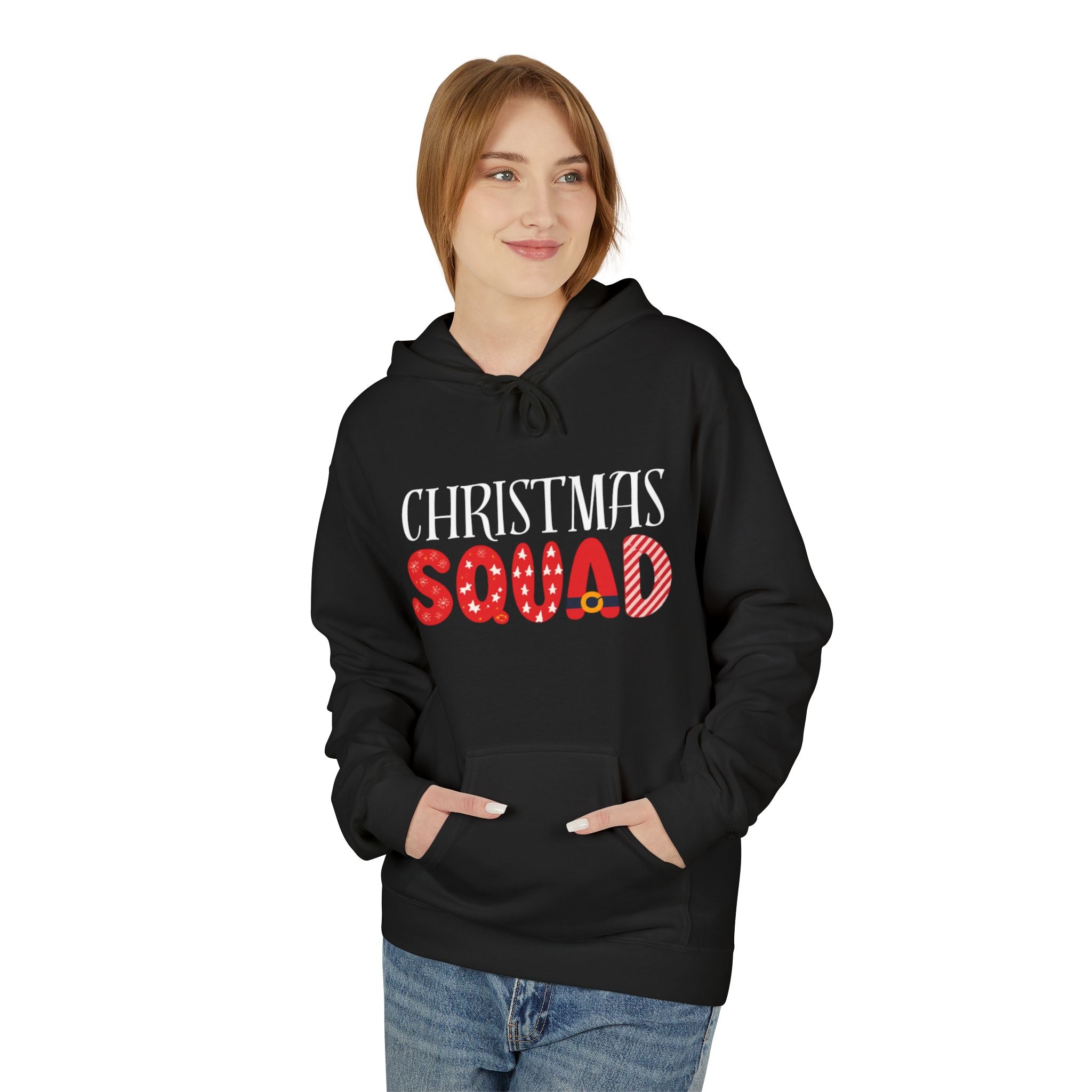 Slide into slow evenings by the tree in a hoodie that reads like a cozy inside joke. This midweight fleece wraps you in warm cotton and a relaxed dropped-shoulder silhouette while the graphic — “CHRISTMAS SQUAD” with candy-cane and ornament accents — gives off playful holiday energy without shouting. Wear it to cookie exchanges, low-key caroling, or movie nights when the lights are twinkling and the cocoa is still hot. The pouch pocket keeps hands toasty and small treasures close. Thoughtfully made with sustainable and socially conscious practices, it’s the kind of layer you reach for when you want to feel comfortable, seen, and in the mood to celebrate quietly with your people.